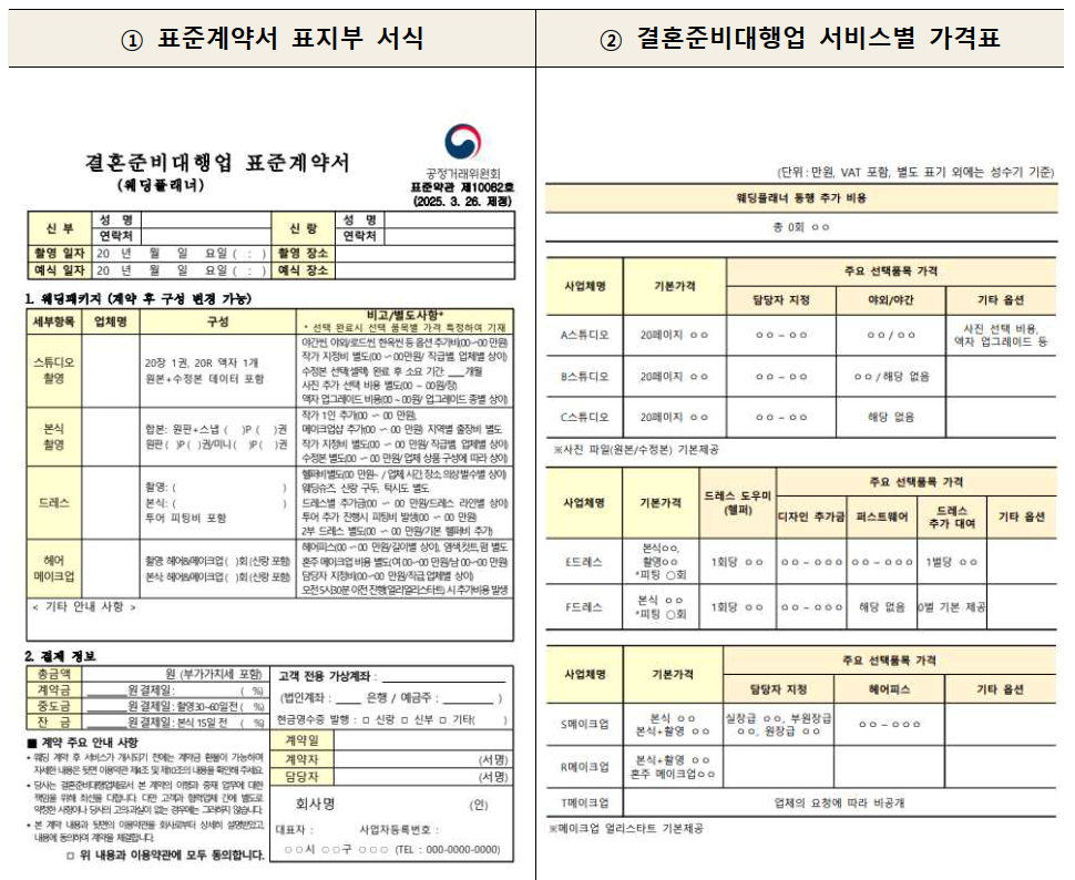 예비부부들이 계약 시 정확한 서비스 내용과 가격을 알 수 있도록 표준계약서에 구체적으로 기재하도록 했습니다.
