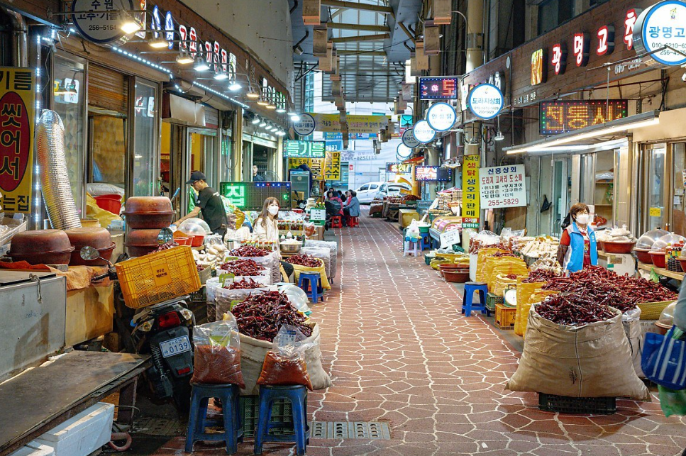 신선한 농수산물이 풍부하며, 도매 상인들도 많이 찾는 시장입니다.